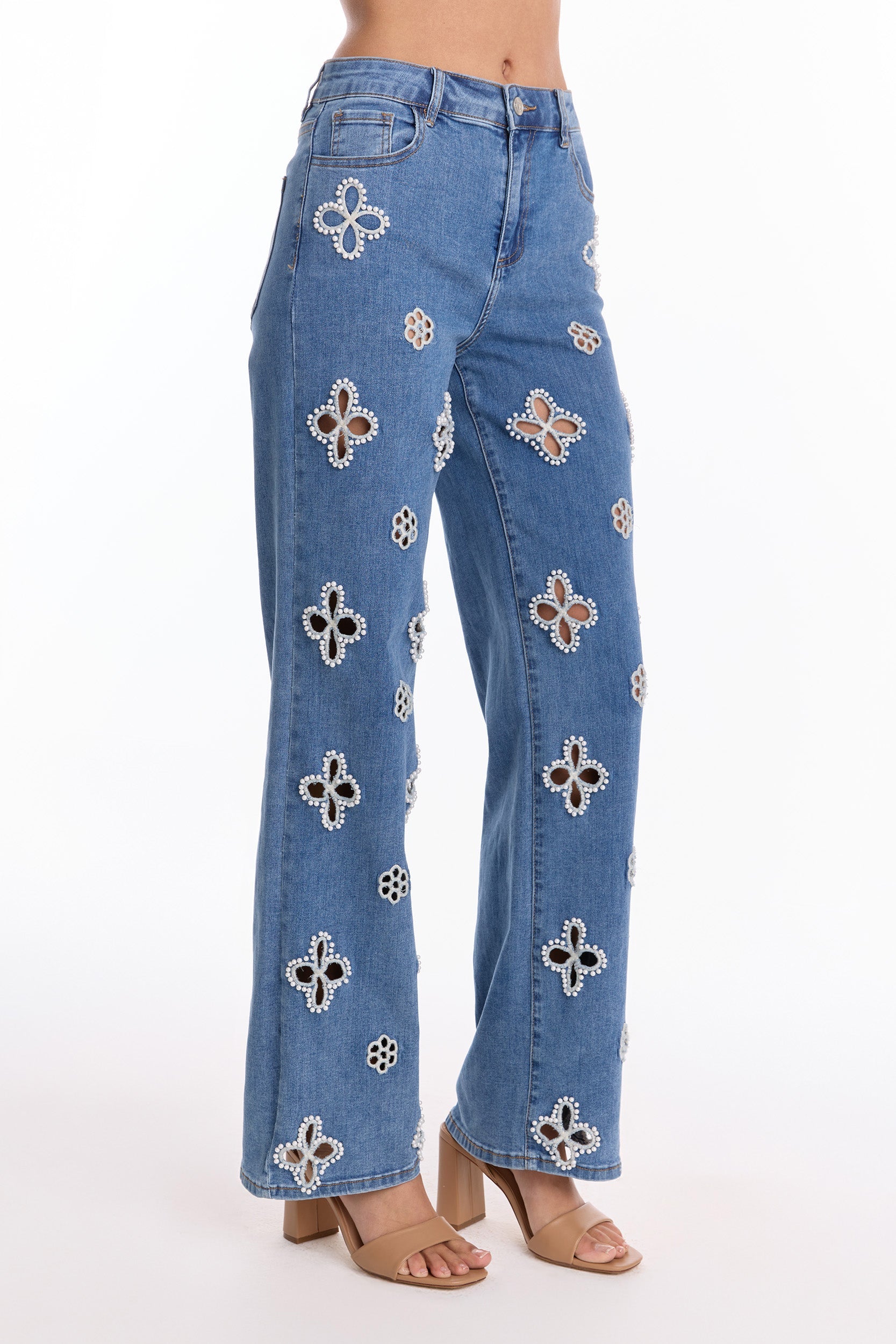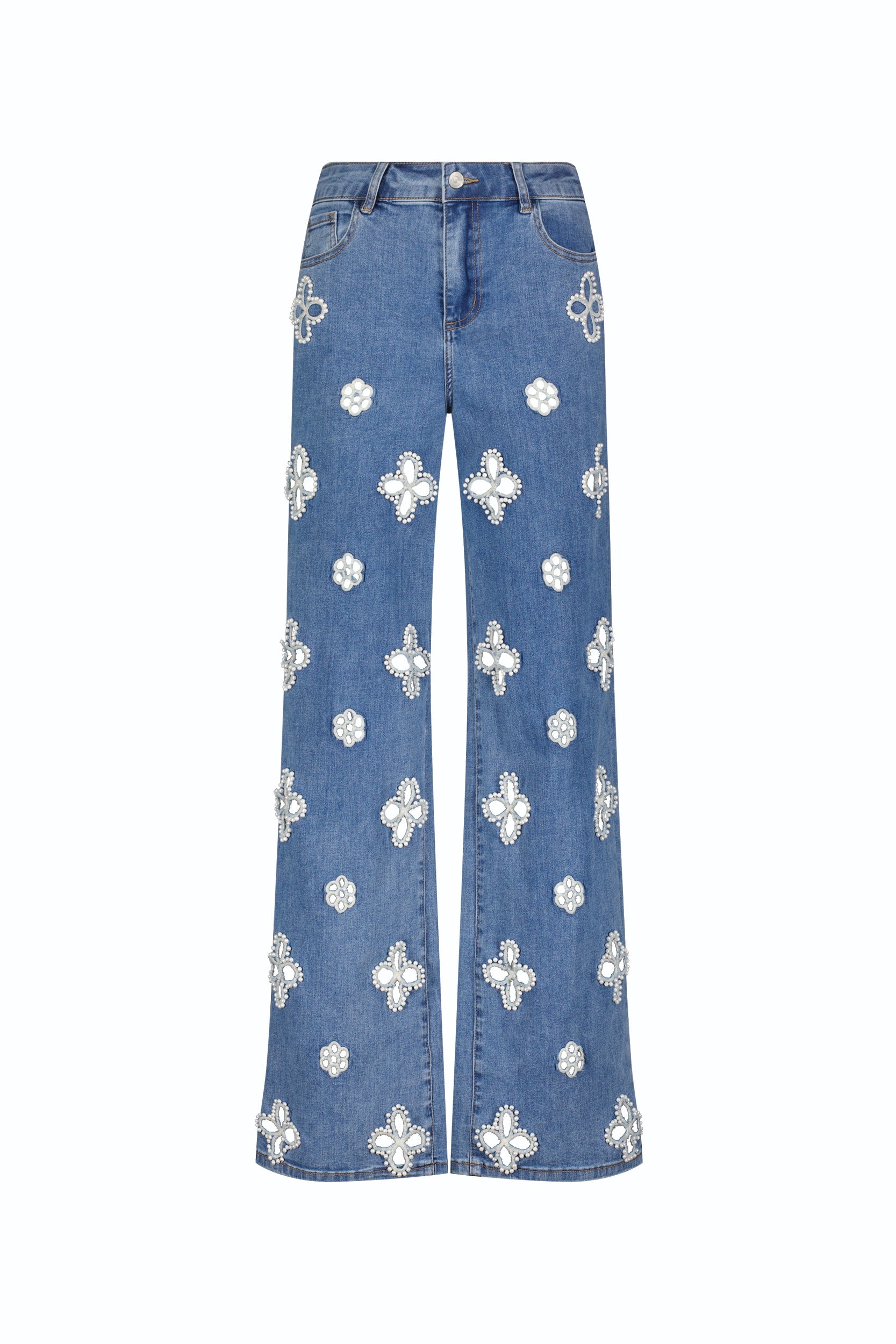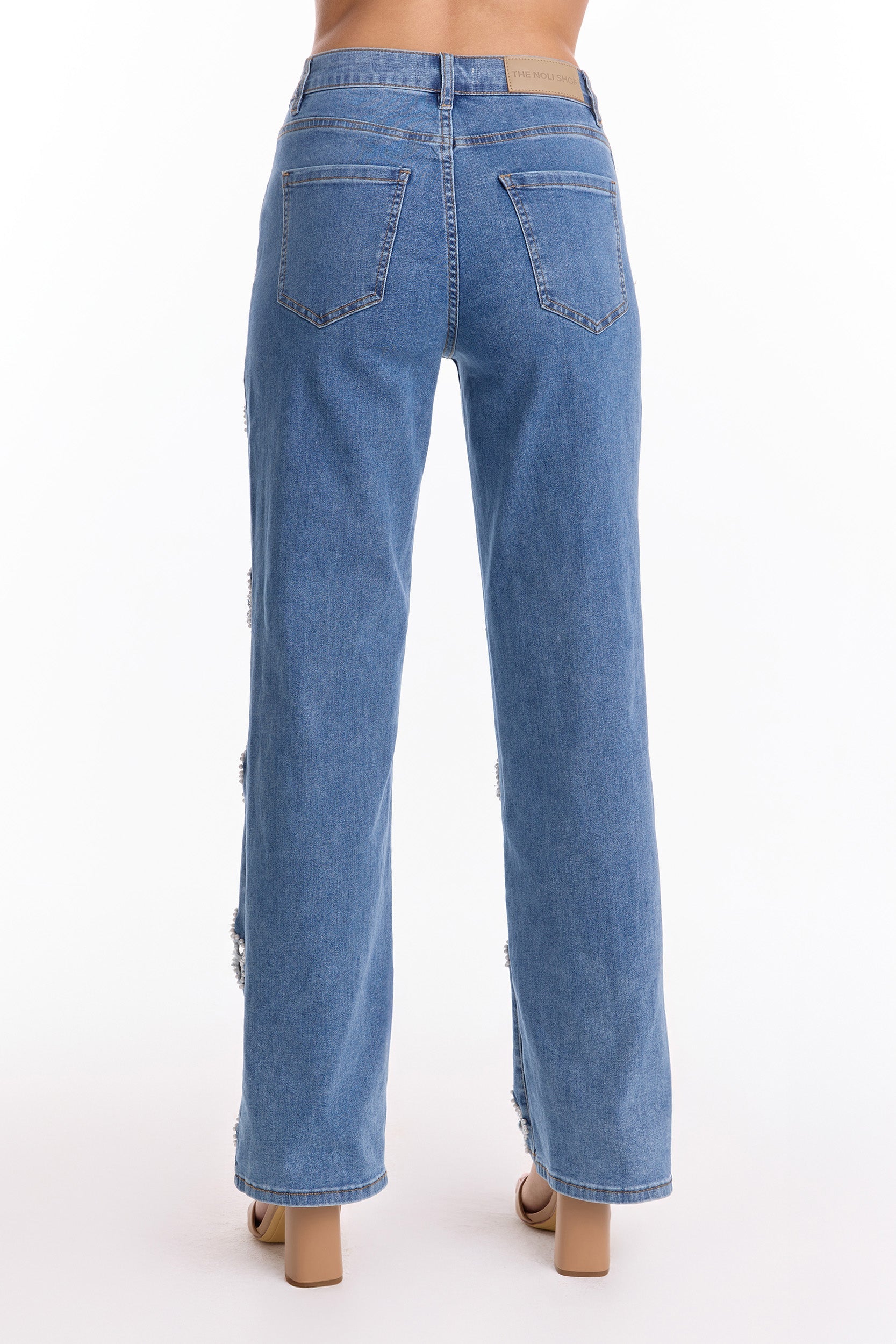 Meet the jean that’s redefining statement denim. The Kaia is crafted from ultra-soft stretch denim and finished with all-over pearl and floral embroidery — a blend of softness, structure, and standout detail. The high-rise, straight-leg silhouette flatters in all the right places while feeling effortlessly modern.